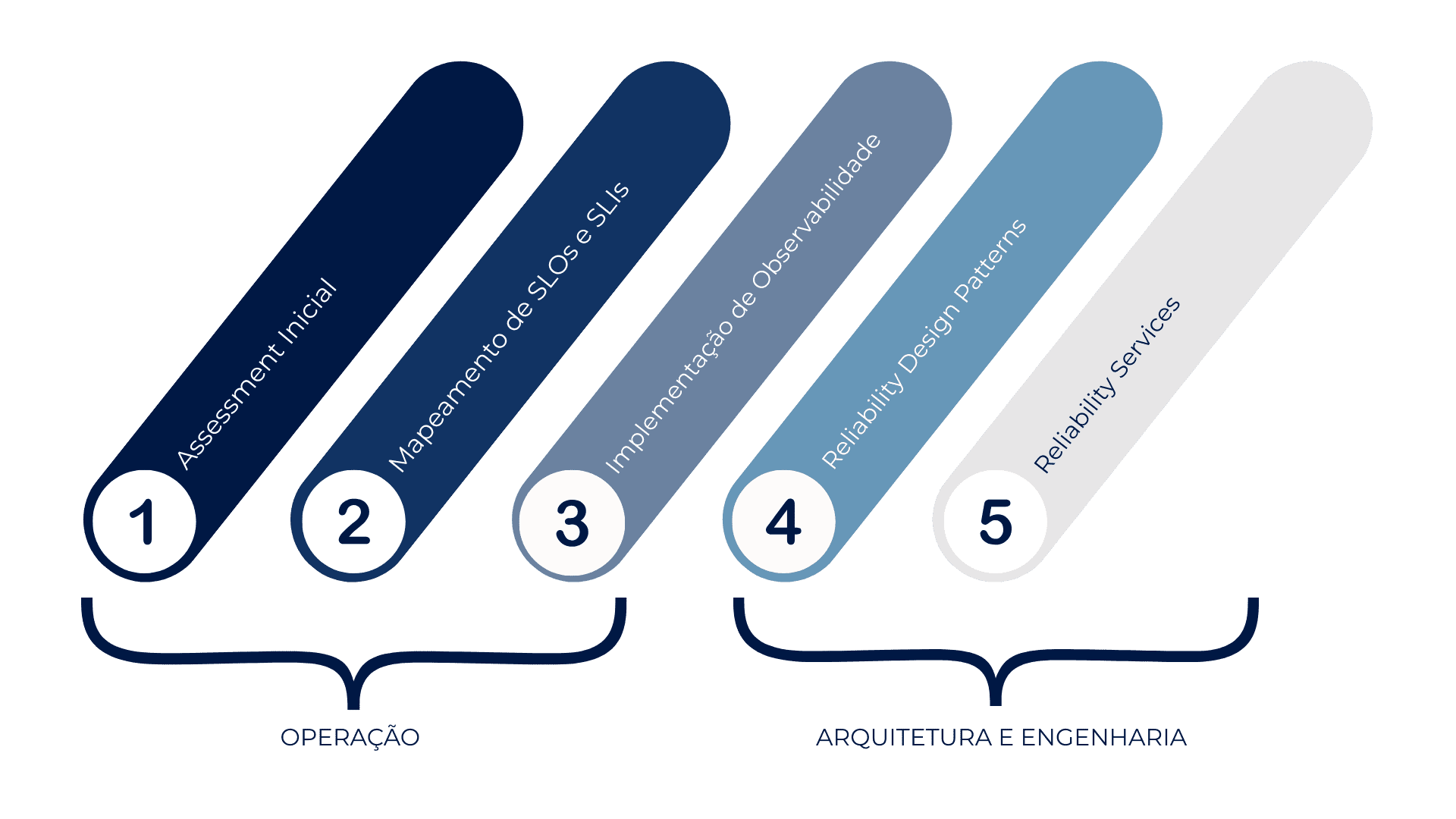 Para muitos de nossos clientes, iniciamos sua jornada de SRE com um processo intensivo no qual, junto com sua equipe, avaliamos seu desempenho atual, melhores práticas e padrões de segurança. Pegamos esses dados de avaliação e criamos um roteiro de implementação que inclui um plano abrangente para implementar o SRE em seu ambiente.